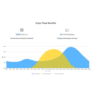 The system is designed for grid-tied operation and is optimized for daytime energy use, meaning it reduces your reliance on grid electricity while providing cost savings during daylight hours. It does not include battery storage, making it ideal for households that want to generate and consume solar energy throughout the day, with any excess energy being exported back to the grid at a standard export tariff.
